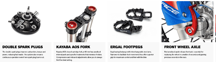 The RR Race 250 2T has been designed to offer a greater torque and a consistently manageable response. A balanced displacement, perfect for those seeking performance and fluidity on all types of terrain.