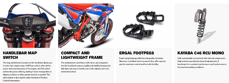 The RR Race 480 4T is pure power and uncompromising torque, enclosed in a racing vehicle that always maintains stability and precision. A bike designed for experienced riders who want maximum performance.