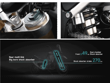 Front suspension φ49mm, dual cavity damping, full- adjustable, YUAN