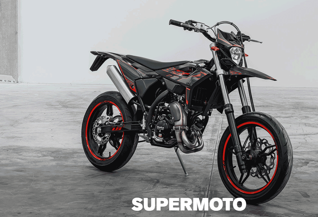 Beta Supermotos are designed for those who want to move fast (and with style) between traffic lights, roundabouts and curves. From the brilliant 50 2-stroke to the efficient 125 4-stroke, these bikes are light, intuitive and fun, with all the character of Beta. Aggressive geometry, 17″ wheels and a factory look: from leaving school to your first lap on the track, you’re always ready to open the throttle.