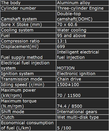 The 699cc, three-cylinder, high-revving, liquid-cooled engine boasts a 13.0:1 compression ratio and a 1.2:1 bore-to-stroke ratio. This potent powerplant delivers over 135 hp per liter, propelling the bike from 0 to 100 km/h in a mere 3.07 seconds and achieving a top speed exceeding 250 km/h.